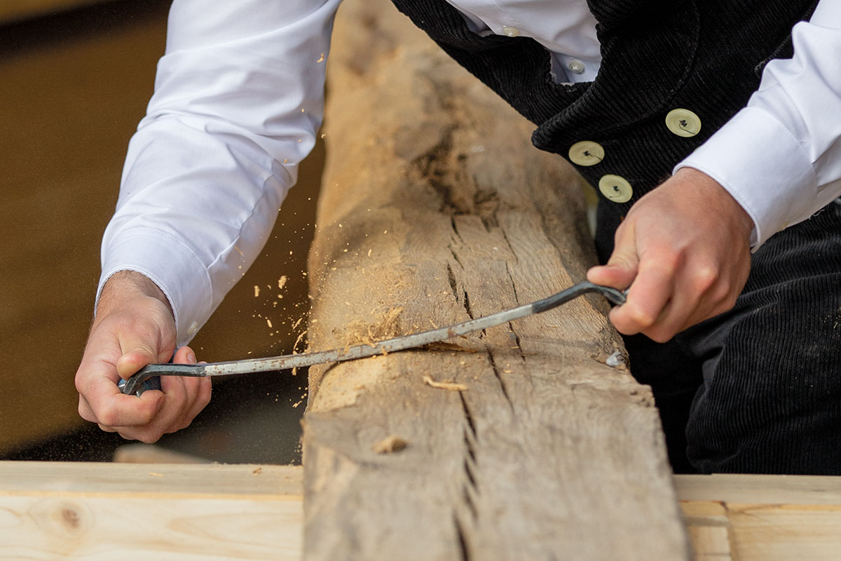 Raphael Weber ist Zimmermeister und Restaurator im Handwerk sowie unser Experte im Bereich Denkmalpflege.